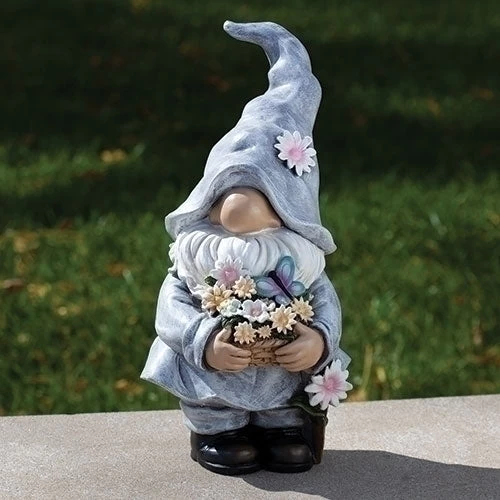 11.25″ Garden Gnome with Colorful Flowers Statue