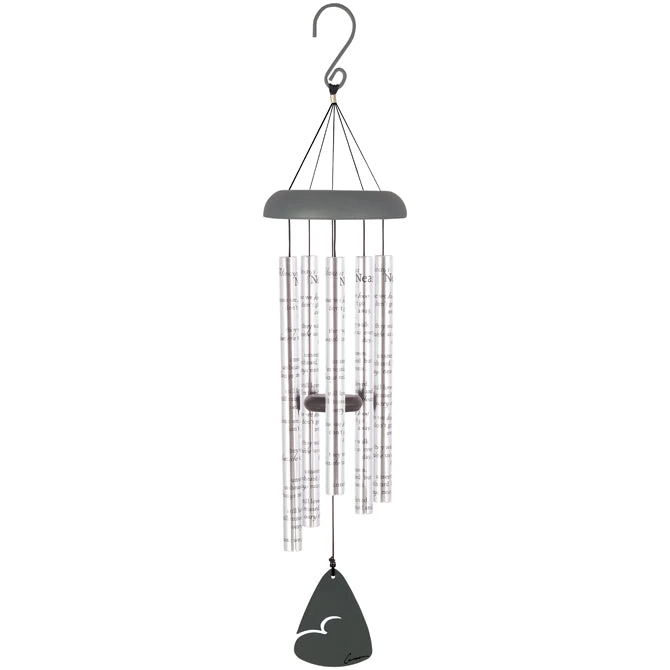 This elegant and classic windchime is printed with a faith-filled message and is the perfect way to commemorate a life well-lived. Remember and cherish a loved one with the chime’s beautiful sound that will help soothe the broken hearted.