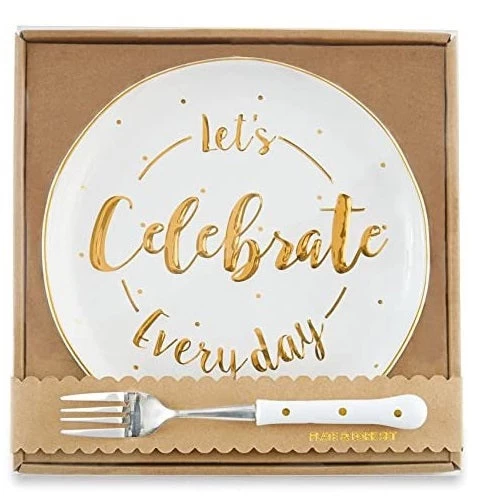Dessert Plate And Fork Set Let’s Celebrate Everyday