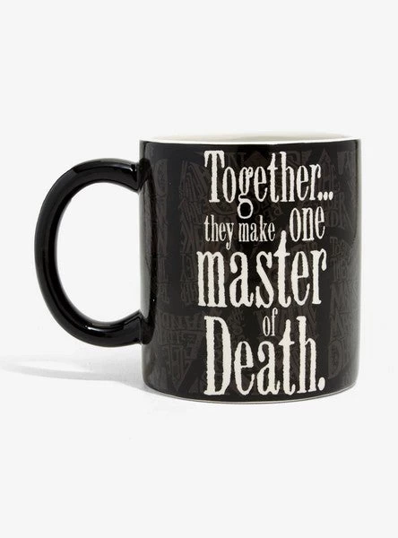 Sip on some hot butterbeer while reading The Tales of Beedle of Bard, or any other magical elixir your wizarding heart desires. This ceramic mug features Deathly Hallows logo and is shaped like a vintage camping mug.