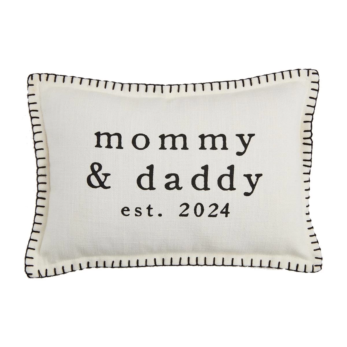 Mommy & Daddy Est. 2024 Pillow Cotton Lumbar Pillow With Stitch Trim