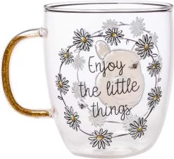 Silver Buffalo Disney Winnie The Pooh Enjoy The Little Things Glitter Handle Glass Mug, 14 Ounces