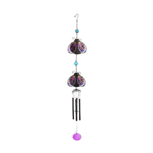 Tiered Ladybug Garden Wind Chime With Stainless Glass Finish