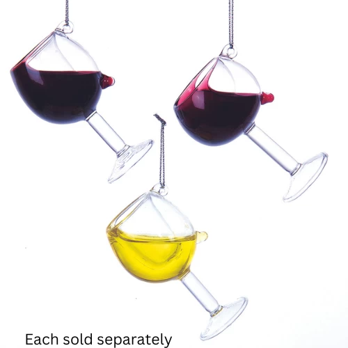 Wine Glass Ornaments, 3 Assorted
